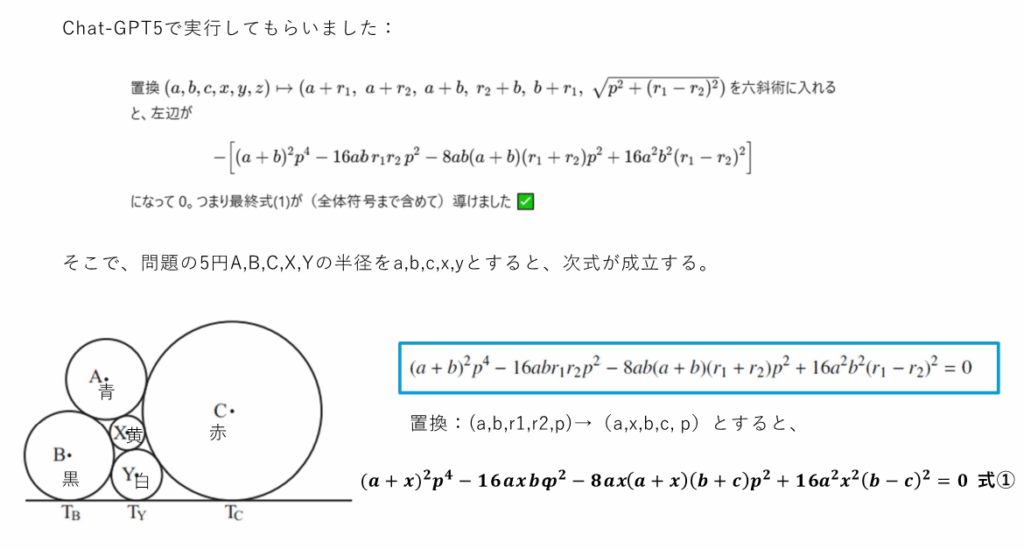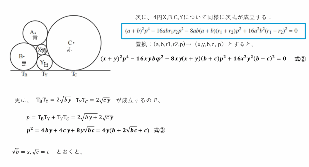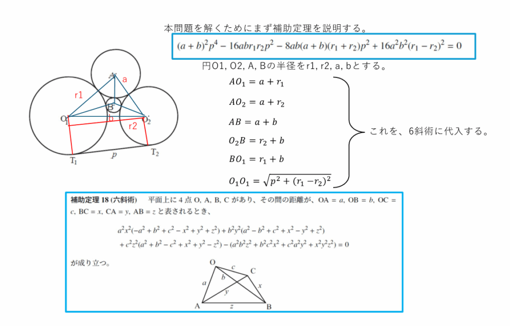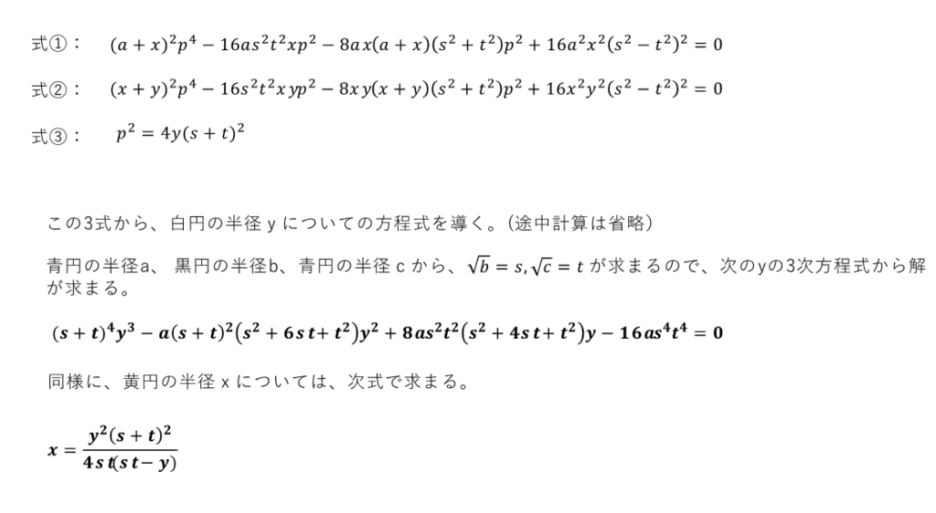 とにかく、複雑な式変形が必要で、疲労困憊です。もちっと簡単な算額を求めますね~(^_-)-☆