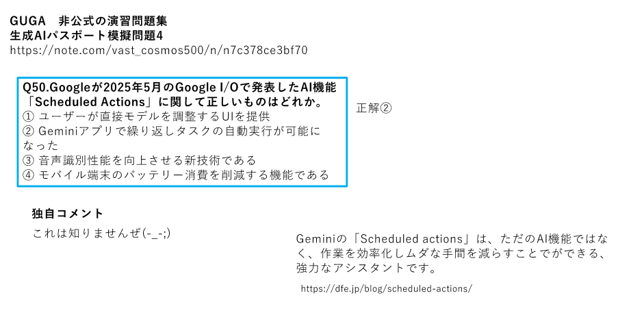 雑記 GUGA模擬4 Q46-Q50 2025年10月26日 今度はちょっとマニアックというか、使ってないと分からない問題が続きます。 残るは、あと10問です。 投稿ナビゲーション GUGA模擬4 Q41-Q45