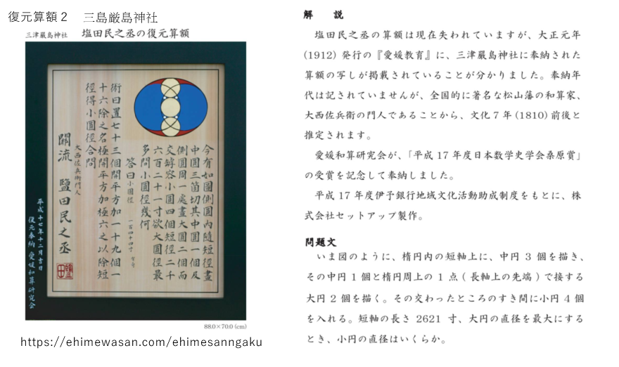 愛媛県の算額の中には失ってしまったものもあるようで、その内の一つがこれです。 大切な算額を持って行ったのは誰でしょう?神社に早く返さんかいね!!