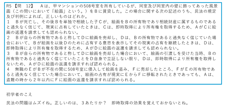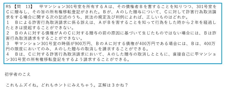 雑記 マンション管理士試験令和5年 問11-15 2025年11月17日 今度は、民法が入ってきます。むずかしいですね! いやあ、記憶が風化している!? アキマセンなあ(*´з`) 投稿ナビゲーション マンション管理士試験令和5年 問6-10