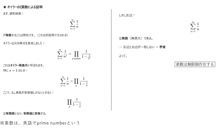 算数・数学コラム 「青の数学」-王城夕紀 著 の問題④ 2025年12月17日 今回は素数の問題です。素数は入口しか教えてもらっていませんが、奥が深すぎます。 深みにはまってみよう! 素数の問題を問いました! リーマン予想までたどり着いたのはエライ(^_-)-☆ 投稿ナビゲーション 「青の数学」-王城夕紀 著 の問題③