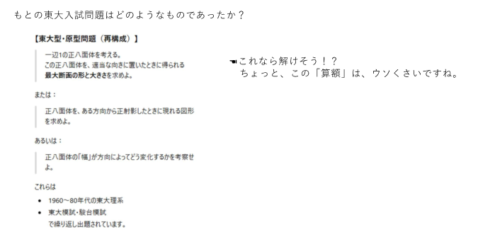 しかし、いくらなんでもこれは!?ということで、元の東大入試問題がどんなものか聞いてみました。