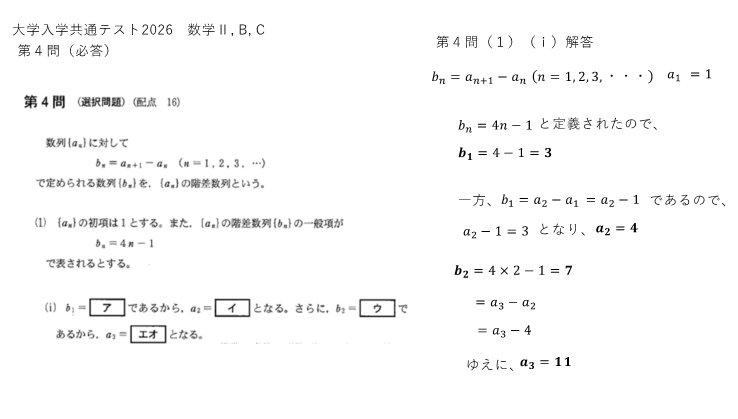 今年も入試の季節!!大学入学共通テスト数学Ⅱ,B,C ④