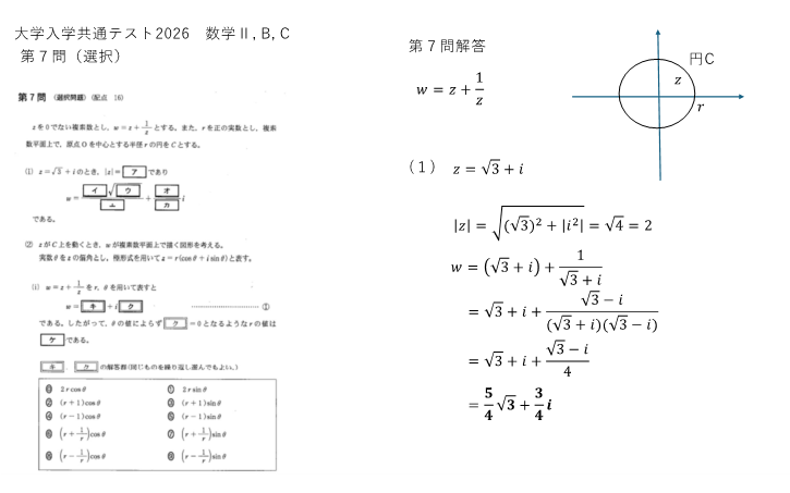 最終問題(第7問)は、愛(注:誤記ではない)(虚数のi) のある複素数の問題です。